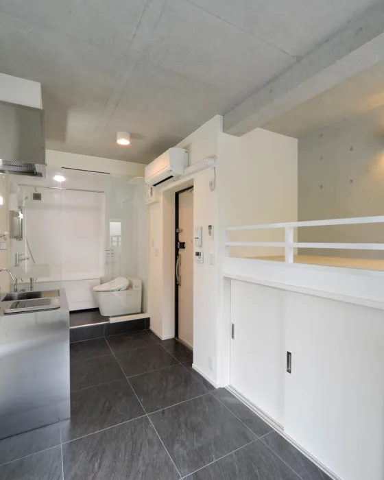 More More More More More More More More 豊島区|2016アーバネージュ高田馬場 所在地 東京都豊島区⾼⽥ 竣工年月 2016年6⽉ 用途 共同住宅 構造 RC造地下1階地上4階建 北側に神田川に向かってバルコニーを設けるプランは目の前がリバーサイドというロケーションを生かした採光プランとしました。生活する人のライフスタイルを考えたロフト型のベッドスペースは収納部分を考慮したデザインであえて仕切りを作らない居住空間は従来のワンルームマンションとは一線を画しています。居住者が利用できるトランクルームの装備があるのも魅力。